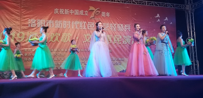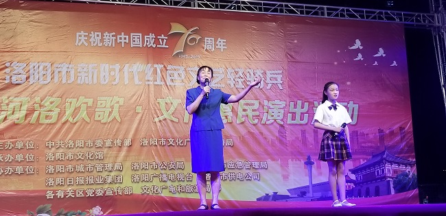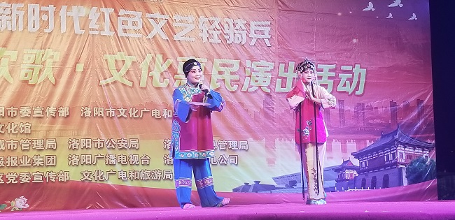 为贯彻落实党的十九大精神,丰富人民群众的精神文化生活,弘扬社会主义核心价值观,传承红色基因。由中共洛阳市委宣传部和洛阳市文化广电和旅游局主办,2019洛阳市新时代红色文艺轻骑兵——河洛欢歌·文化惠民演出洛阳市职业技术学院戏曲艺术学院专场于5月25日晚在周王城广场拉开序幕。