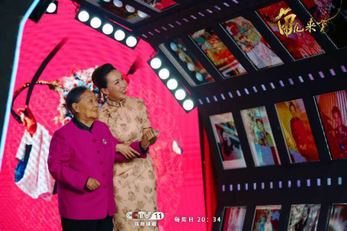 这也是《角儿来了》栏目开播以来请到的最年长的一位艺术家。我院杰出校友、“马派”艺术传承人柏青、关美利为广大观众讲述了自己与马派艺术的不解之缘,并现场为观众展示了“马派”经典剧目《穆桂英挂帅》与《花打朝》的经典片段。最后,99岁高龄的马金凤先生与弟子们一起演唱了“辕门外三声炮”一段。