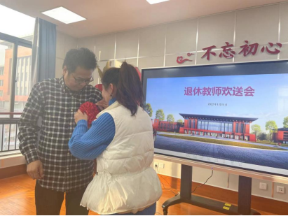 会上,全体教师通过短视频的形式共同温情回顾即将退休的张始终老师从教30多年来无私奉献、培育学生的画面和时刻。张媛老师代表青年教师怀着尊敬之情为张始终老师戴上了“光荣退休”胸花,并送上了深深祝福。