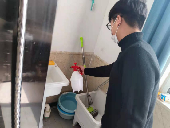 会议结束后,学生干部第一时间对宿舍进行了定期消杀工作。