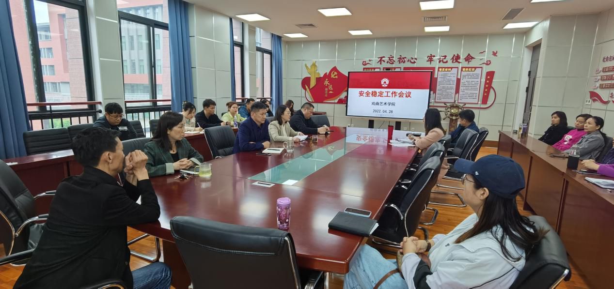 戏曲艺术学院院长潘华传达了河南省教育厅关于校园安全稳定工作会议精神。她表示,一是要加强校园的安全稳定工作,由于疫情防控期间,学校实施封闭管理,教师和辅导员一定要及时关心学生的心理问题,做好心理疏导,理清三个清单,对待学生工作要耐心和细致,全力保障学生在校安全。二是要第一时间发现网络舆情及时处理,正确引导学生树立积极向上的人生观、价值观。三是加强防汛用电安全,提醒教师和学生要养成良好的用电习惯,要使学生在校期间的危险隐患降到最低。