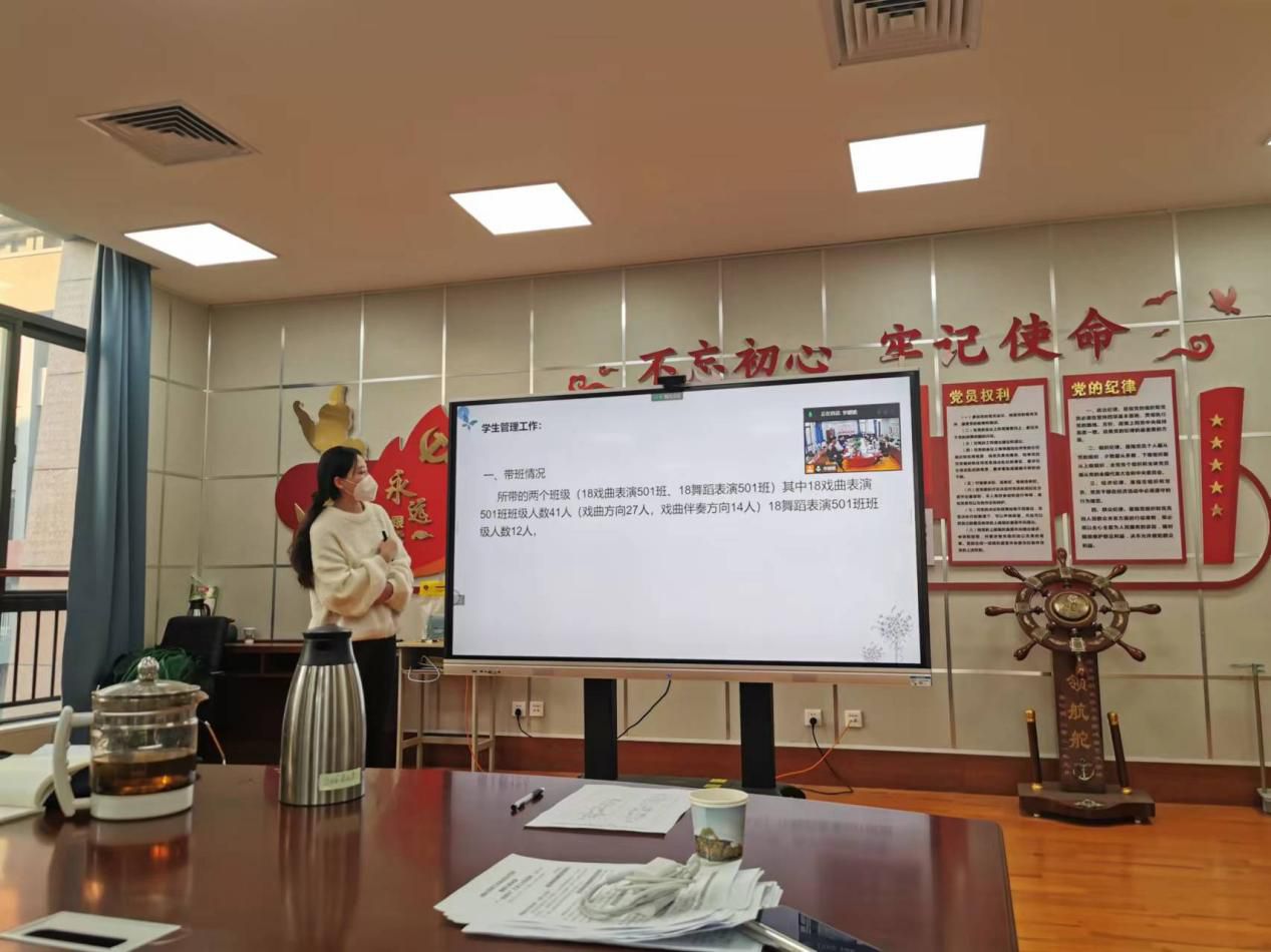 12月26日下午,戏曲艺术学院在A—206会议室以“线上+线下”的形式召开了行政人员述职大会。戏曲艺术学院全体教职工参加会议。