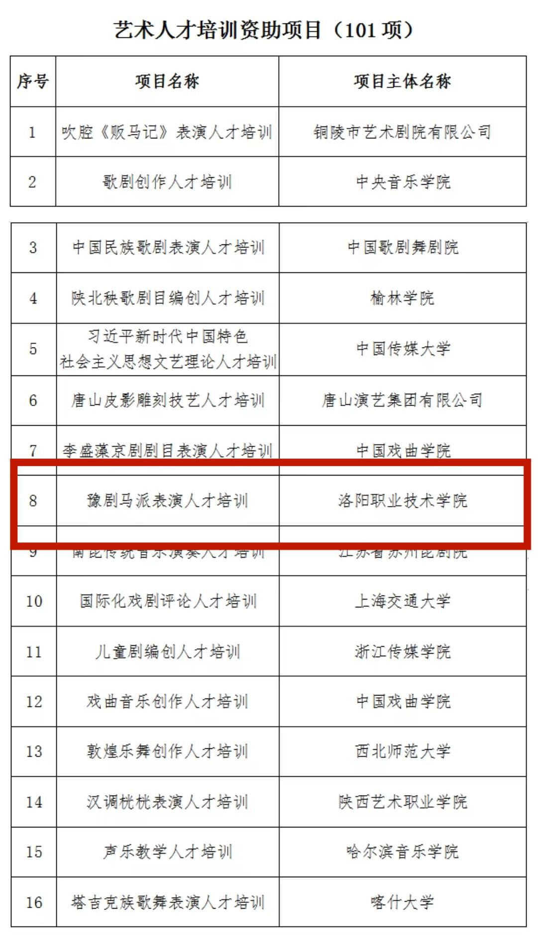 3月3日,国家艺术基金管理中心公布了《国家艺术基金(一般项目)2023年度资助项目名单》。戏曲艺术学院申报的《豫剧马派表演人才培训》(项目负责人:张松晓)成功获得“艺术人才培训资助项目”立项,这是我校首次获批国家艺术基金项目。