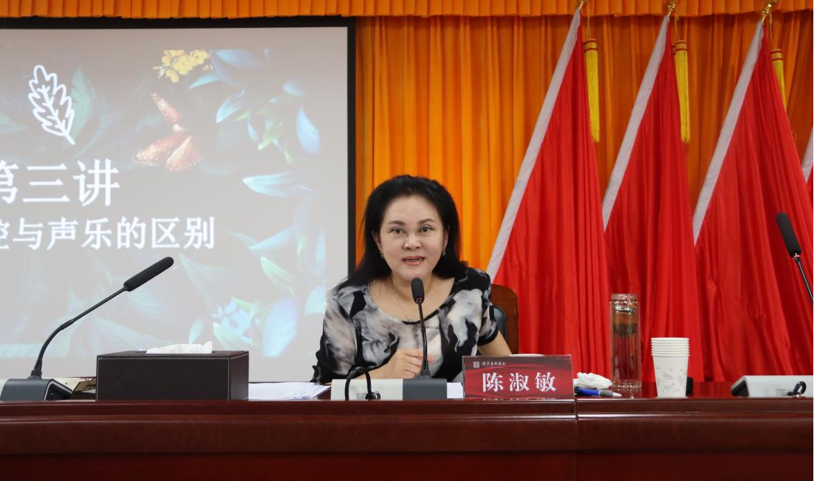 7月11日,解放军总政歌剧团著名女高音歌唱家陈淑敏来到洛阳职业技术学院,为国家艺术基金2023年度艺术人才培养资助项目——《豫剧马派表演人才培训班》的学员们上了一堂精彩的戏曲理论课。陈淑敏毕业于洛阳文化艺术学校(洛阳职业技术学院戏曲艺术学院前身),也是一名优秀的豫剧演员,在课堂上她以《让艺术点亮生命》为题,从优秀演员的潜质、创造角色的要素、戏曲声腔与声乐的区别、厚德与敬艺四个方面为学员们分享经验感悟。并从对马金凤大师的崇尚与追求谈起,结合自己几十年的艺术经历与学员们交流了自己的体会,她谈到优秀的演员应当“亲和为人、匠行从艺;传正经典、守韵启新。”