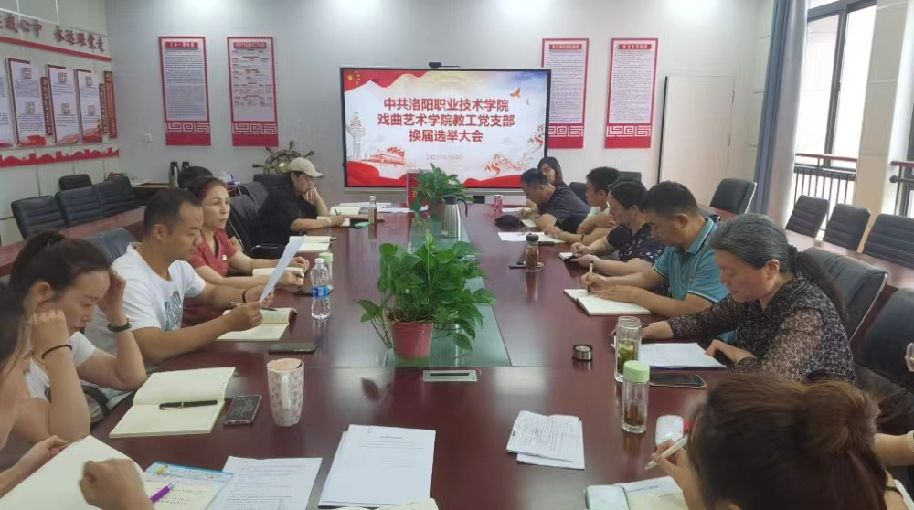 会上,首先由张自力代表上一届教工党支部委员会作工作报告,表决通过了《中共洛阳职业技术学院戏曲艺术学院教工党支部委员会换届选举党员大会选举办法》,监票人和计票人名单,在充分酝酿支部委员候选人的基础上,以无记名投票、差额选举的办法选举王雪涛、王菲、李媛媛为新一届戏曲艺术学院教工党支部委员。后经新一届教工党支部委员会召开第一次会议,选举王雪涛为教工党支部书记,王菲为组织兼纪检委员,李媛媛为宣传兼统战委员。