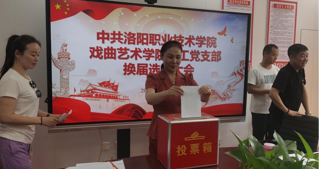 会上,首先由张自力代表上一届教工党支部委员会作工作报告,表决通过了《中共洛阳职业技术学院戏曲艺术学院教工党支部委员会换届选举党员大会选举办法》,监票人和计票人名单,在充分酝酿支部委员候选人的基础上,以无记名投票、差额选举的办法选举王雪涛、王菲、李媛媛为新一届戏曲艺术学院教工党支部委员。后经新一届教工党支部委员会召开第一次会议,选举王雪涛为教工党支部书记,王菲为组织兼纪检委员,李媛媛为宣传兼统战委员。