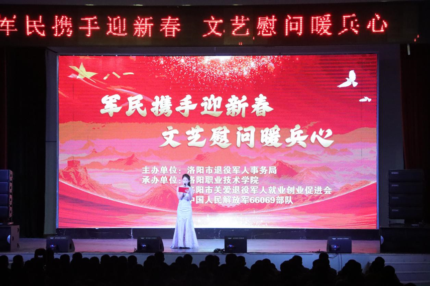 12月27日,洛阳职业技术学院戏曲艺术学院70余名师生代表走进宜阳县驻军部队,举办“军民携手迎新春,文艺慰问暖兵心 ”主题慰问演出,为官兵们带来了一场精彩绝伦的文艺表演,向人民子弟兵致以节日的问候与崇高敬意。此次活动由洛阳市退役军人事务局主办,洛阳职业技术学院、洛阳市关爱退役军人就业创业促进会、中国人民解放军66069部队等单位承办,不仅丰富了部队文化生活,也进一步巩固了军民团结的深厚情谊。