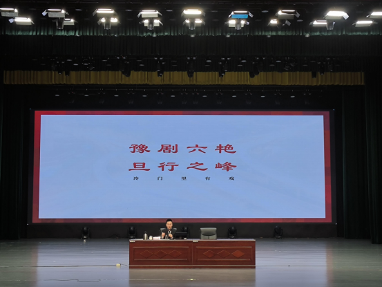 在热烈的掌声中,月阳老师登台开讲。他深耕戏曲传播领域多年,始终以创新视角推动传统戏曲艺术的传承与发展。讲座中,月阳老师凭借丰富的行业经验和深厚的专业知识,分享了许多鲜为人知的戏曲故事。从豫剧“六艳” 的惊艳亮相,到吉尼斯纪录背后戏曲人的拼搏与突破,一个个生动的故事,让师生们仿佛置身于戏曲艺术的历史长河之中,深切感受到戏曲艺术的筋骨与魂魄,领略到戏曲人在时代浪潮中坚守初心、勇于创新的精神。