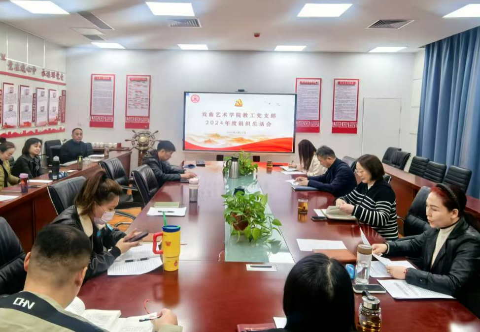 为深入学习贯彻习近平新时代中国特色社会主义思想,巩固深化党纪学习教育成果,3月27日,戏曲艺术学院教工党支部召开2024年度专题组织生活会及民主评议党员会议。会议由教工党支部书记朱雪娟主持,学院党总支书记秦新武、党总支副书记潘华以普通党员身份参会,教工党支部全体党员参加会议。