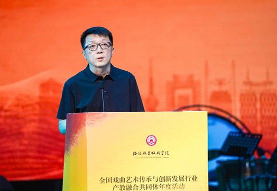 赵健在致辞中表示,全国戏曲艺术传承与创新发展行业产教融合共同体自去年成立以来,各成员单位秉持高度的责任感和使命感,积极作为、通力协作,通过召开全国戏曲艺术传承创新研讨会、优化课程体系与教学模式、促进人才双向流动、举办戏曲艺术文创设计展等,在人才培养、校企合作、社会服务、文化传承创新等多个领域取得了显著的成绩,有力推动了传统戏曲艺术与现代数字技术的有机融合,实现了戏曲教育供给与行业人才需求的精准对接,为新时代戏曲艺术的创新性发展注入了动能、增添了活力。希望各成员单位充分发挥自身优势与特色,集众智、聚合力,持续为戏曲艺术传承与创新谋思路、解难题,为探索戏曲艺术育人新路径、扩大戏曲艺术影响力、培养更多高素质技术技能人才作出新的更大贡献。
