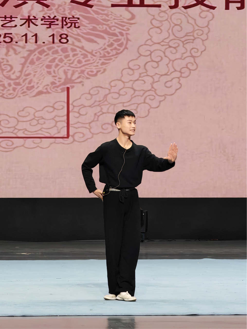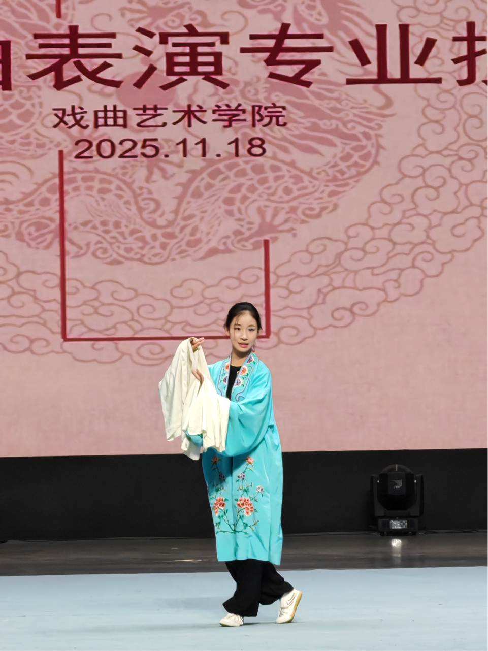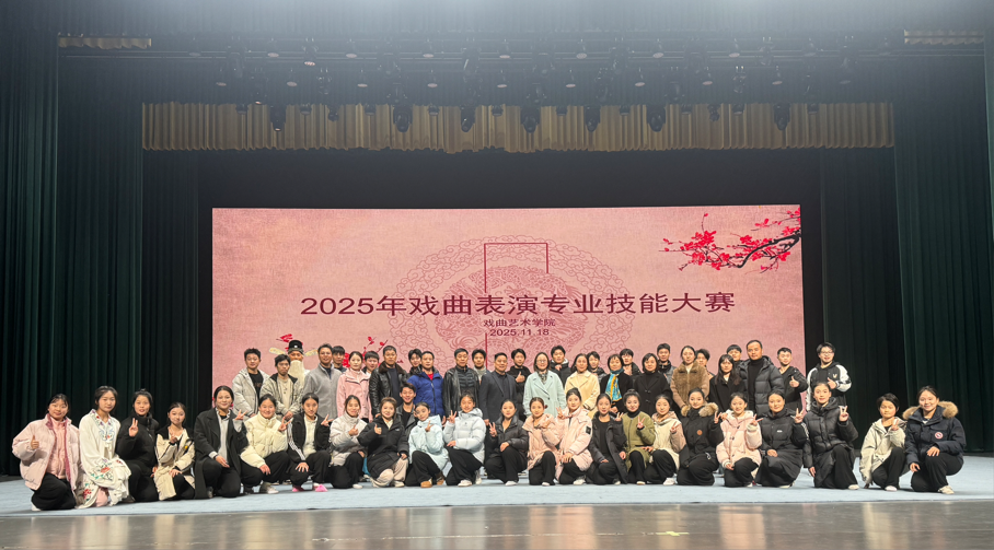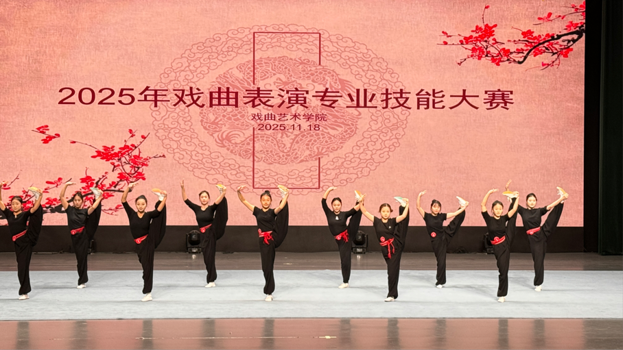 为提升我院戏曲表演专业学生的舞台实践能力,全面提高学生的艺术职业技能,11月18日晚上,戏曲艺术学院举办的2025年度戏曲表演专业唱腔、基武功技能竞赛在戏曲实训剧场举行。