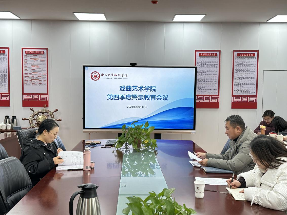 为深入贯彻落实党的二十大和二十届三中全会精神,扎实推进全面从严治党向基层延伸,深化家风家教建设与党风廉政建设深度融合,12 月 19 日下午,洛阳职业技术学院戏曲艺术学院在 206 会议室召开第四季度警示教育会议。会议由学院党支部书记秦新武主持,学院全体教职工全员参会,共同接受廉政教育、筑牢思想防线。